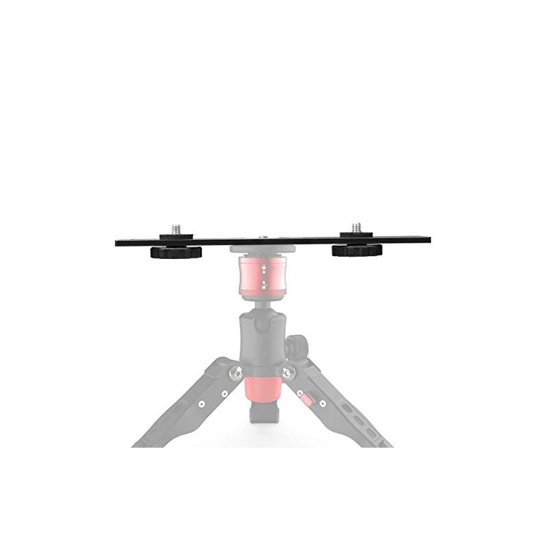 - 【1/4’’ and 3/8’’ Thread】 Dual camera mount for tripod comes with 1/4’’ and 3/8’’ thread holes at the center for tripod, light stand, handle grip, quick release plate and other support.
