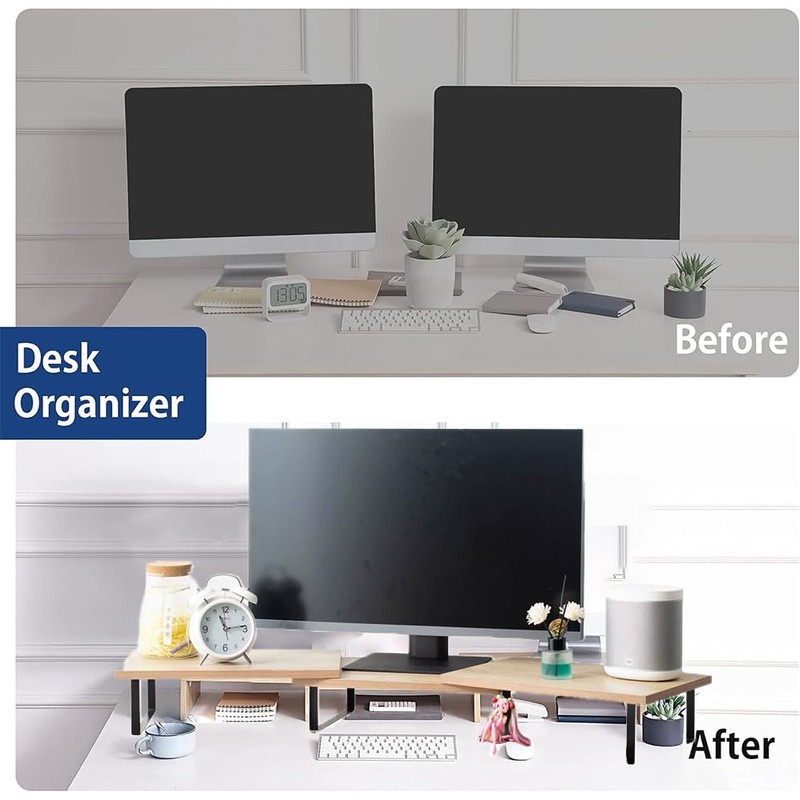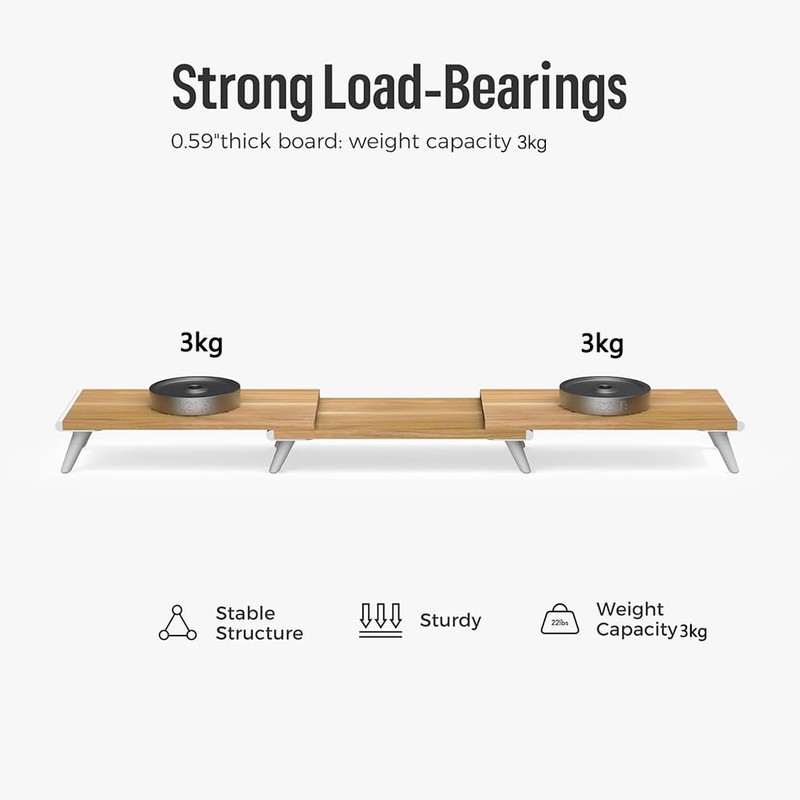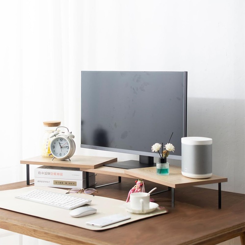 • 【Sturdy & Durable Wood Construction】 Built from premium wood, this monitor riser is solid, stable, and long-lasting. It can hold up to 3 kg, easily supporting monitors, laptops, printers, and other office accessories.