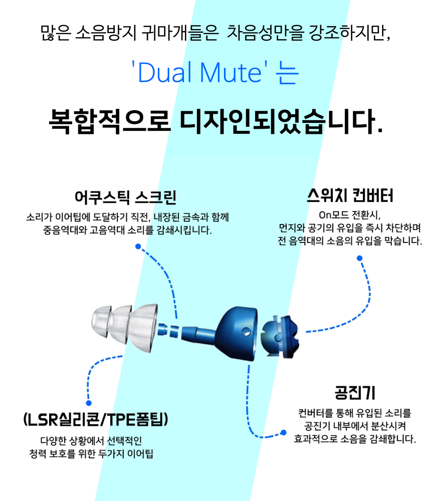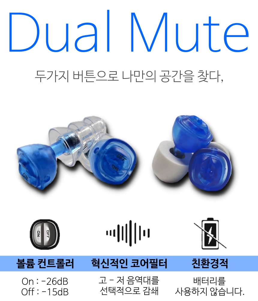Dual mute noise canceling earplugs, noise-prevention sleep earplugs / 듀얼뮤트 노이즈캔슬링 귀마개 층간소음 방지 수면 이어플러그
