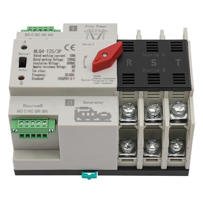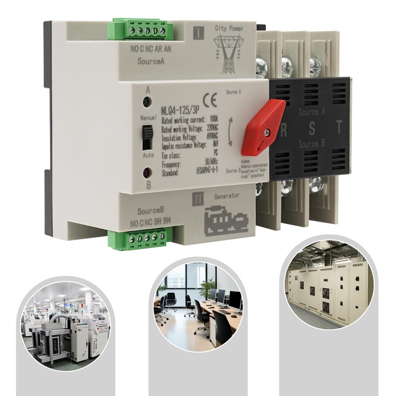 Dual Power Automatic Transfer Switch NLQ4-125/3P 100A 220V AC Automatic Transfer Switch Switch Load Diverter for Municipal Power UPS Inverter Solar