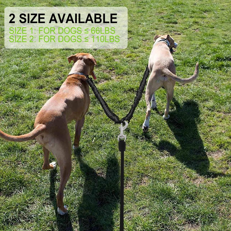 - ELASTIC ROPE & NO TANGLE DESIGN - Elastic rope can reduce the risk of you and your dogs being injured by neck and shoulders during traction. 360° swivel clasp design allows for auto adjusting when dogs criss cross, no limtation for your dogs while moving from side to side without messing the leash.