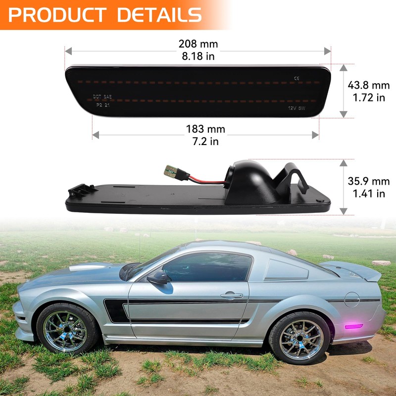 - πππππ πππππππ Side markers for 2005-2009 Ford Mustang all equips with durable ABS plastic housing and tough PC lens, lifespan more than 55000 hours.