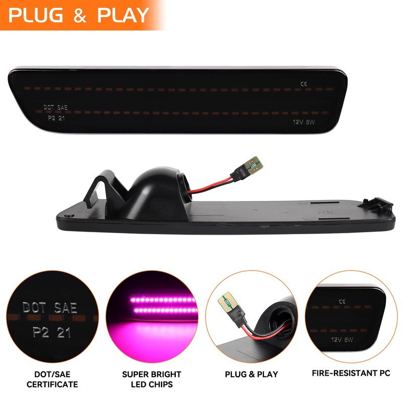- ππππ πππ ππππ πππ Package include 2pcs smoked black lens rear bumper pink purple led side marker reflectors (LH+RH), bright parking/position light feature ensures safety day and night!