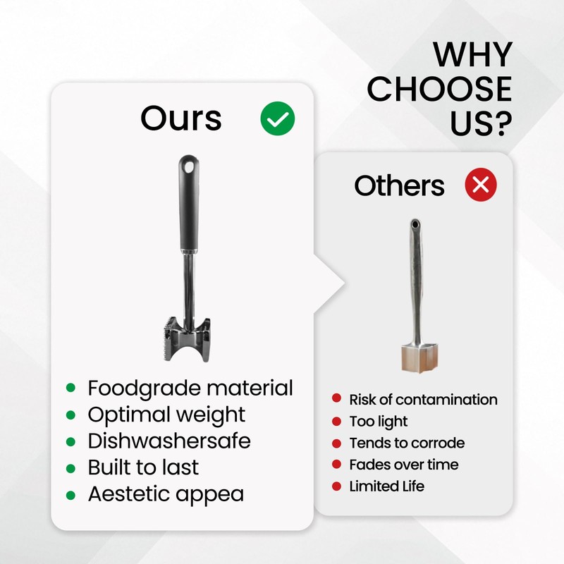 - Perfect for All Meats: Whether you're tenderizing steaks, chicken, pork, or even preparing dough, this mallet ensures consistent results, making every meal restaurant-quality.