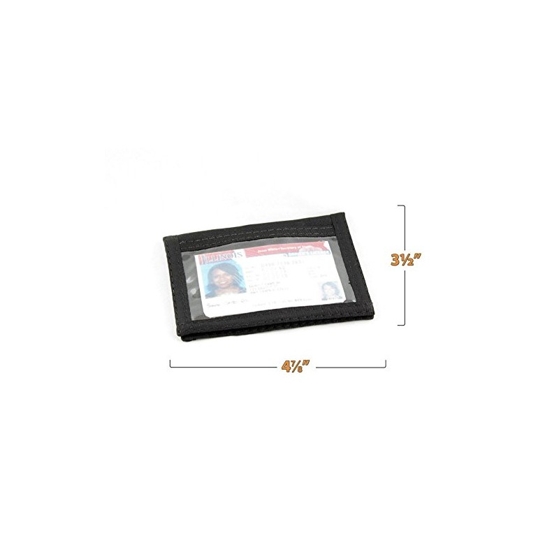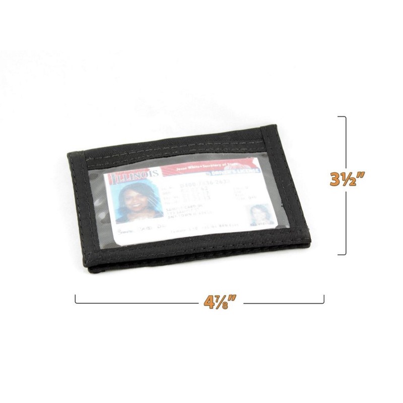 4 7/8 Inch (H) x 3 1/2 Inch (W) x 7 1/8 Inch Open Width. 3 Clear ID windows. 2 outside & 1 inside. Mesh pocket on the Inside holds Cash, Credit Cards, etc. Keyring, Secure hook and loop Closure. Lightweight and Water Resistant. Double Stitched for Added Strength. Made in USA by Rainbow of California.