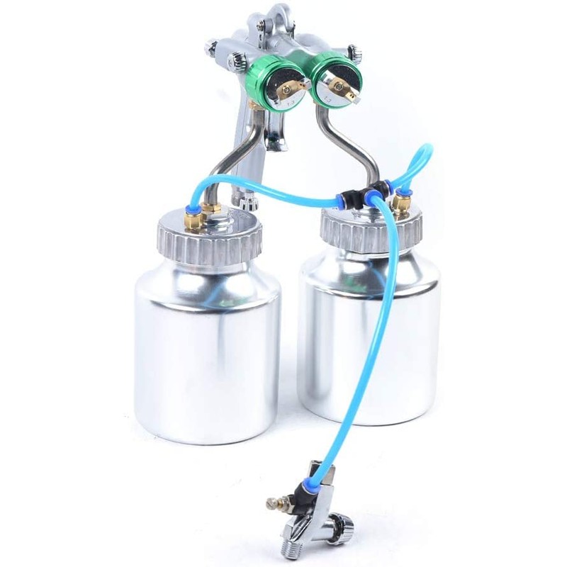 - Dual Spray Design for High Efficiency: Equipped with two spray guns working simultaneously, this paint spray gun significantly speeds up large-scale projects like auto refinishing, furniture coating, and industrial spraying, reducing work time by 50%.