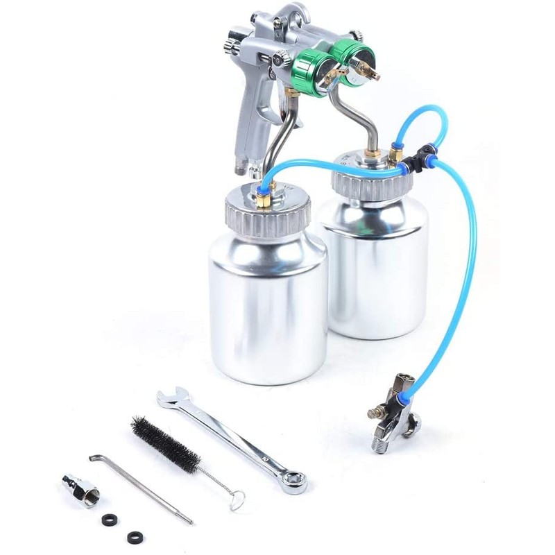 - Ergonomic & Easy to Use: Lightweight (5.14 lbs) with an ergonomic grip for fatigue-free operation. Features detachable parts for effortless cleaning and comes with 2 large-capacity paint pots (0.26Gal each).
