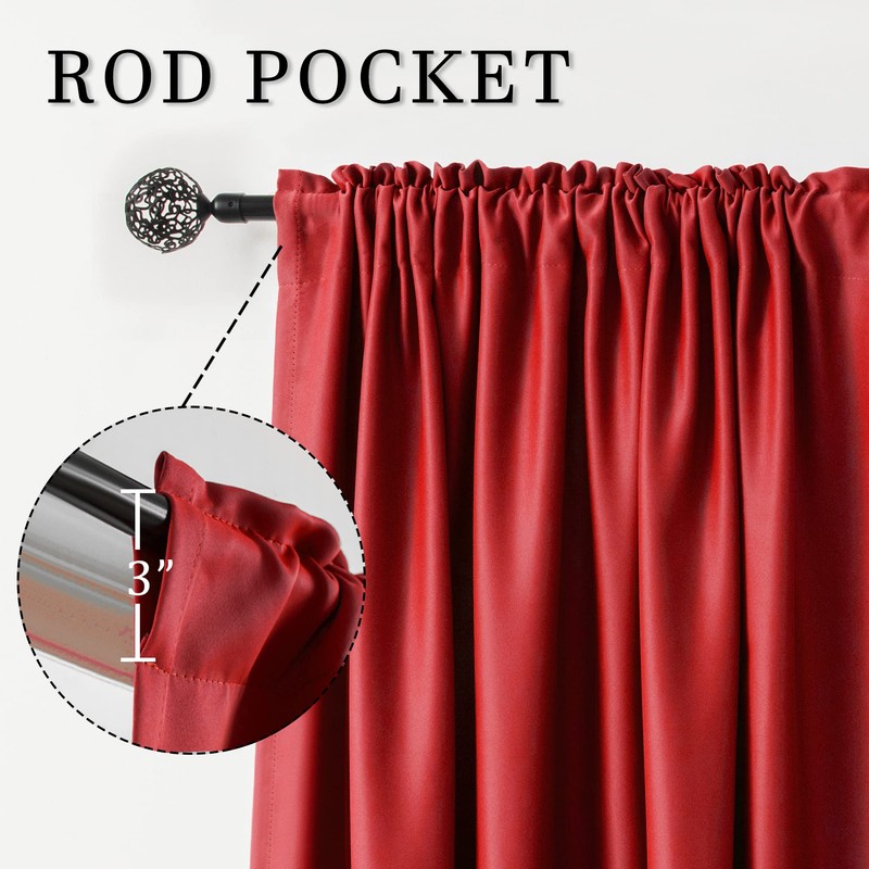 - Size&Style : Set include 2 blackout rod pocket curtain panels.Each panel measures 54" wide x 45" length (Total 108W X 45L). 3" rod pocket top fits most standard rods.The bottom of the curtain has a stitched edges of about 2 inches, which makes the curtain thicker and more beautiful.