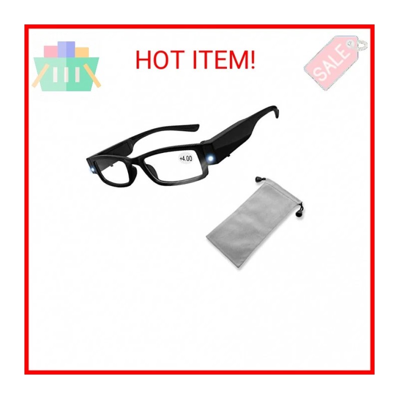 - Reading Glasses With Light:It can be used as a normal glasses.When you turn the LED on ,it can be a light drops.Great to be use in car,in bed,on a aeroplane,camping or where light are too dark to reading and allowing you to work in bed without disturbing your sleeping partner.