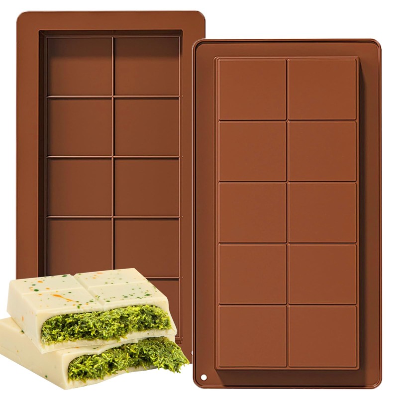 Dubai Chocolate Bar Mold Silicone Chocolate Bar Molds, Deep Rectangular, 2 Pack, Large Size for Stuffed Bars (2PCS Deep Size)