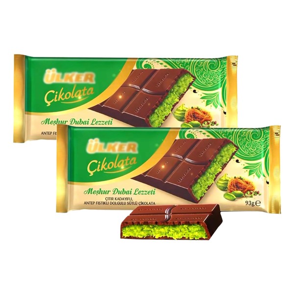 Dubai Chocolate - Milk Chocolate With Pistachio, 93 gram x 2 count Total 6.4 oz