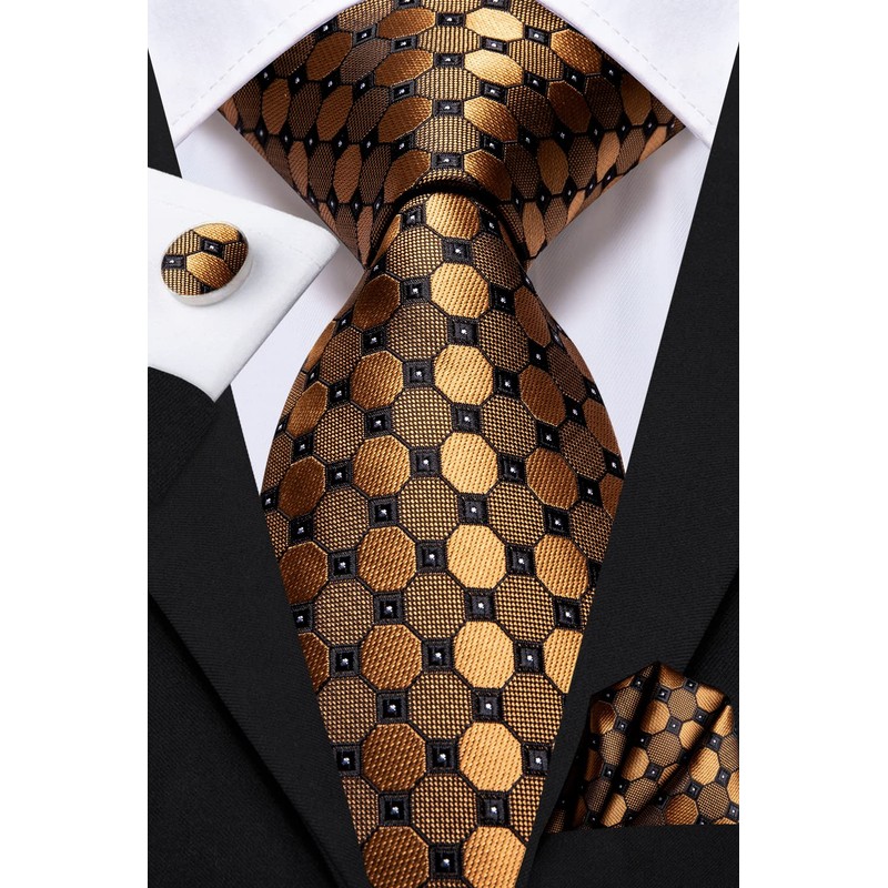 Dubulle Black and Gold Dots Ties Set for Men Woven Mens Gold Neckties Pocket Square Cufflinks Formal