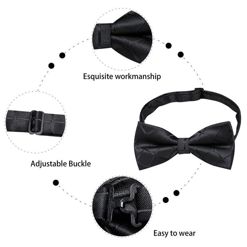 - Bowtie Styles: Houndstooth Necktie/Checks tie / Plaid ties/Solid color necktie /Polka Dots tie set /Gold Neckties /Black pocket square set/Pink/Navy Blue/Red/Purple ect are all can be your choices, which is the must-have accessory for any successful men