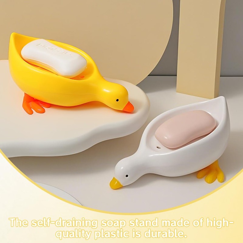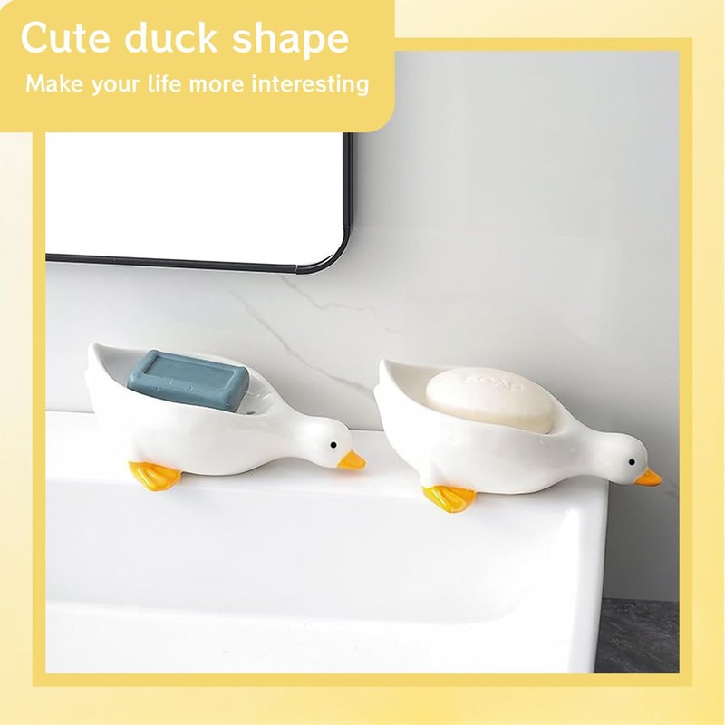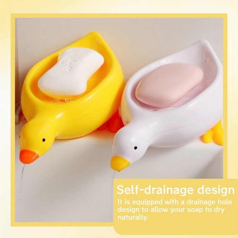 Duck Design Soap Dish with Automatic Drain, Soap Holder, Shower Soap Holder, White, for Kitchen, Bathroom & Shower