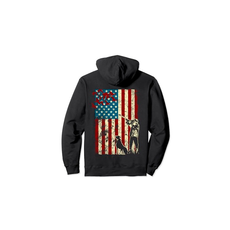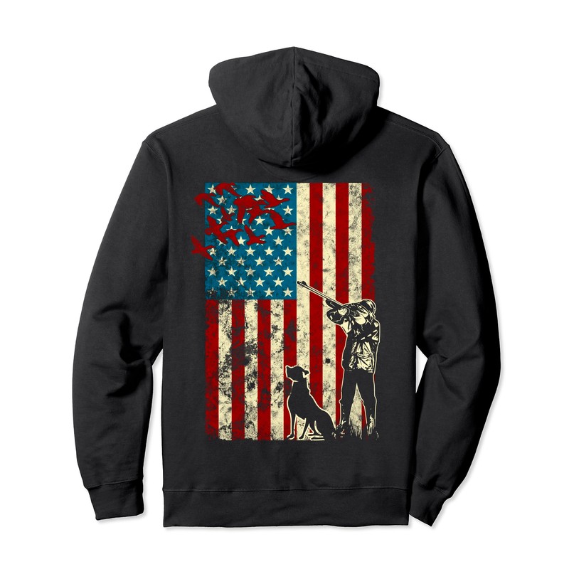 Duck Hunting Distressed Patriotic American Flag gift Hunters Pullover Hoodie