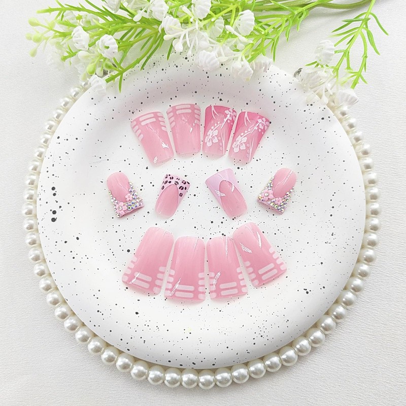- Quick wearing: After polishing the nail surface, wipe it clean with alcohol cotton, choose the appropriate nail piece and stick it with jelly glue, press it on the natural nail for about 20 seconds.