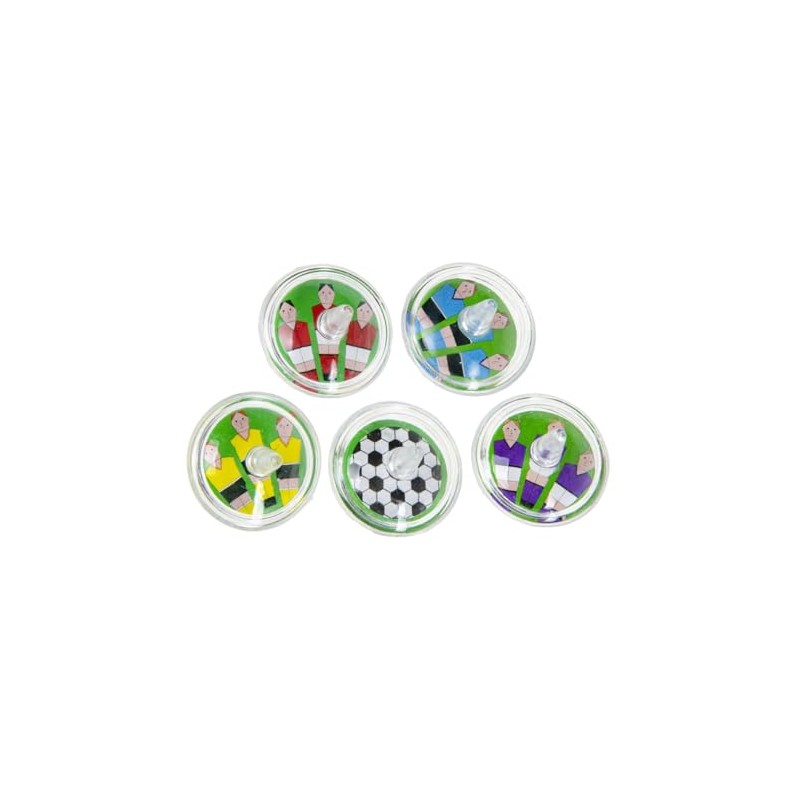 DUCKIEZ 1 pack of 12 Football Spinning Tops. 5 different designs chosen at random. Perfect party bag filler or school fete giveaway!