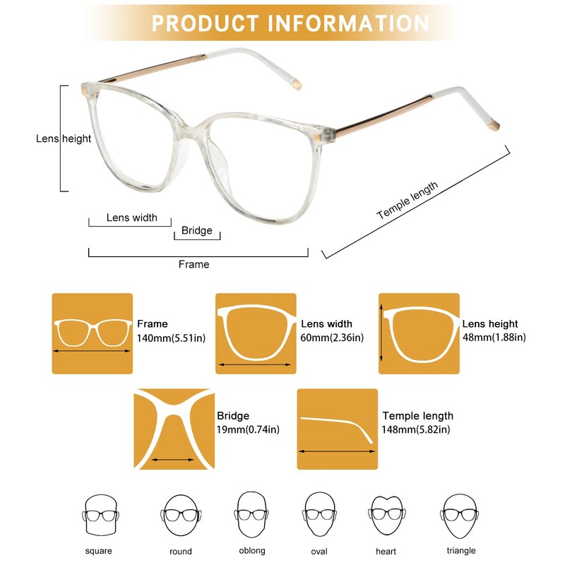 - anteojos de bloqueo de luz azul: las pantallas que miramos cada día emiten luz azul que causa dolores de cabeza, insomnio, fatiga ocular e incluso pueden provocar graves daños de retina a largo plazo. Estas anteojos de bloqueo de luz azul ofrecen una protección superior contra la luz azul mediante el uso de múltiples capas de revestimiento de filtro de luz azul aprobado tanto en el interior como en el exterior de nuestras lentes.