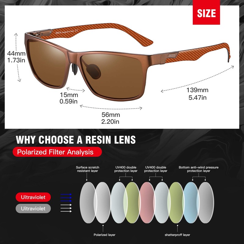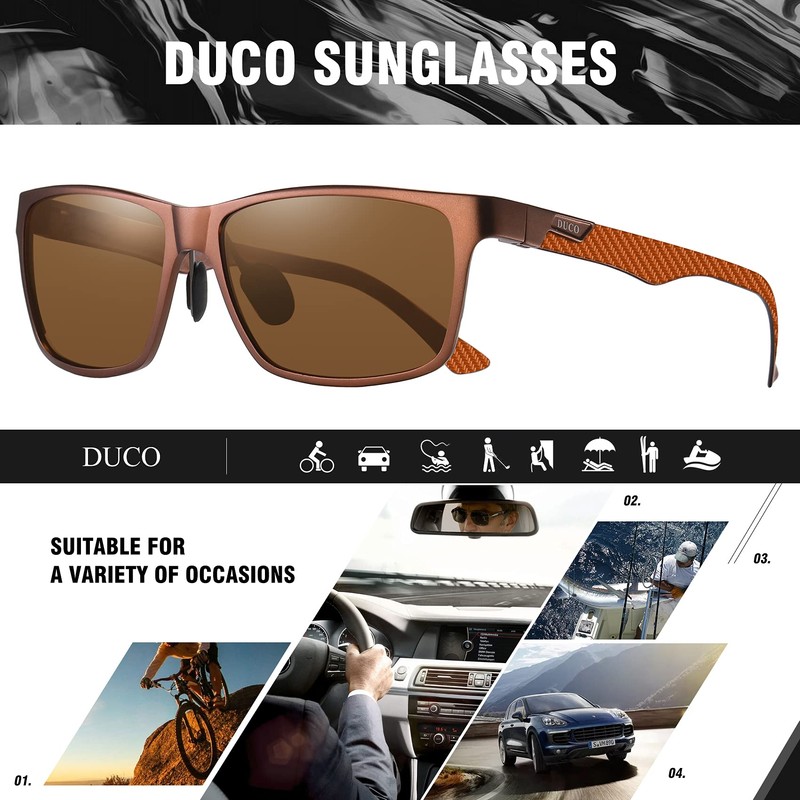 - Complete accessories and lifetime warranty: carabiner case and cleaning cloth included; We are not only selling sunglasses, but also excellent customer service, DUCO offer lifetime warranty and 30 days money back guarantee