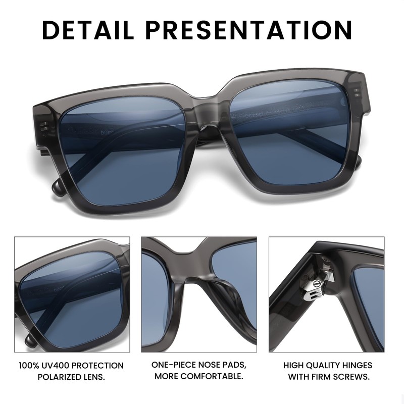 DUCO Retro Rectangular Acetate Polarised Sunglasses for Men UV400 Protection Men's Sunglasses Driving Hiking Glof Sunglasses DC2342, Transparent Grey Frame Blue Lens
