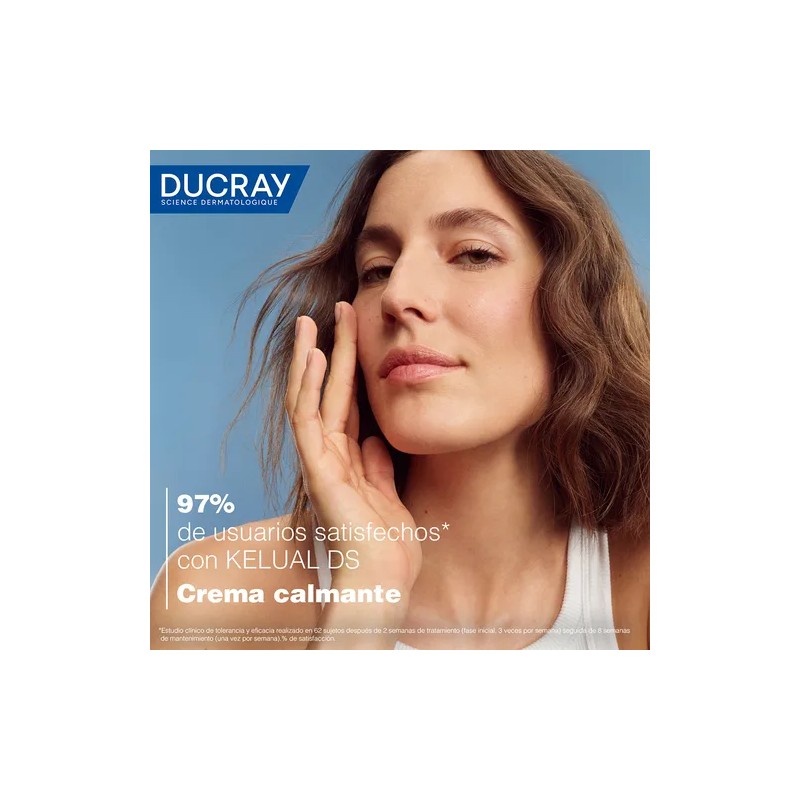 Kelual DS Crema Calmante Antiescamas de Ducray ofrece cuidado específico para pieles con enrojecimiento, comezón y escamas. Su fórmula combina Ciclopiroxolamina, Piroctona Olamina y Keluamida, ayudando a mejorar el aspecto de la piel y a mantenerla confortable.