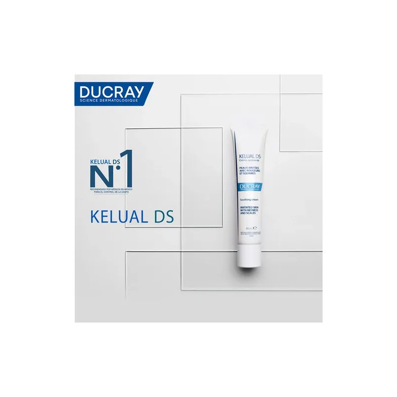 Kelual DS Crema Calmante Antiescamas de Ducray ofrece cuidado específico para pieles con enrojecimiento, comezón y escamas. Su fórmula combina Ciclopiroxolamina, Piroctona Olamina y Keluamida, ayudando a mejorar el aspecto de la piel y a mantenerla confortable.