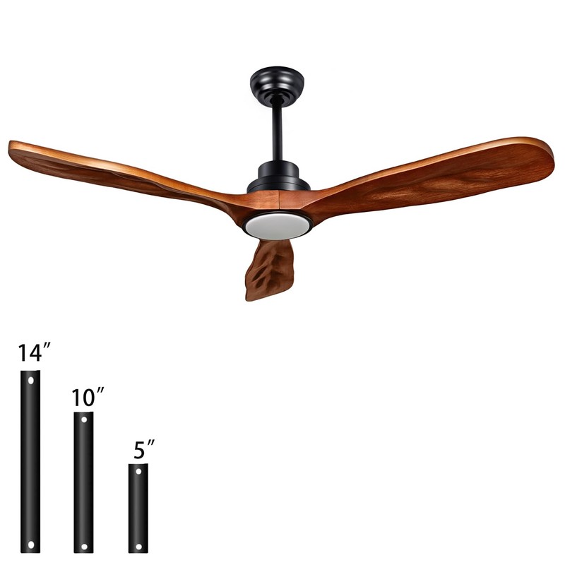 - ◆ Wood Fan Blade Ceiling Fan: The ducrew 52” ceiling fan has three natural tung walnut-colored wood fan blades that are finely carved. It's available with a choice of 5-inch, 10-inch and 14-inch extensions, allowing you to choose the optimal height for your space, with an overall height from ceiling to base of 12 inches, 17 inches or 21 inches. It can also be installed at a 15-degree tilt.