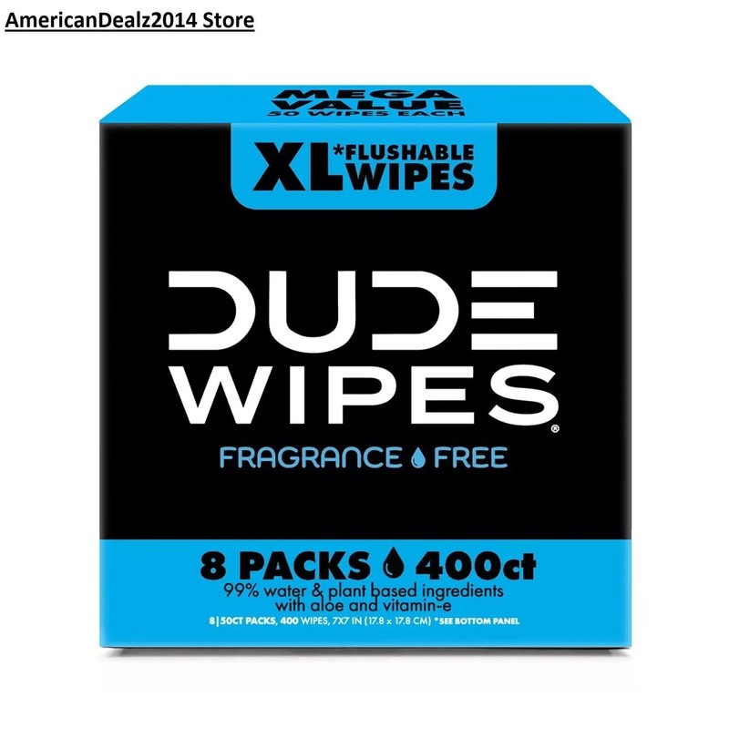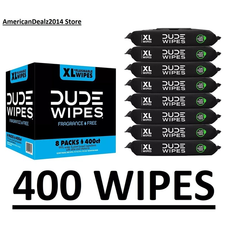 - 8 packs of 50 wipes each for a total 400 Extra Large DUDE Wipes