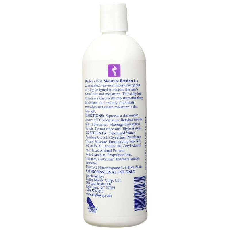 Dudleys PCA Moisture Retainer is a concentrated, leave-in moisturizing hairdressing that restores the hairs natural oils and moisture. This daily lotion is enriched with humectants and creamy emollients that soften and retain moisture in the hair shaft.