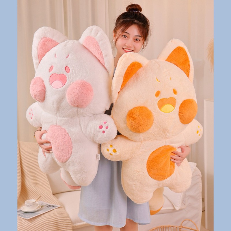 DuDu Cat Plush Doll Cute Cartoon PP Cotton Stuffed Soft Cat Doll for Girlfriend Kids Pink White 40cm/15.7in (Approx. 0.3kg/0.7lb)