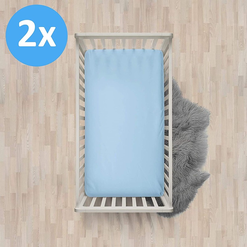 Dudu N Girlie - Cot Sheets 140 x 70 Fitted | Cotbed sheets | Soft Jersey Cotton Toddler Bed Sheets 140 x 70 Fitted Fully Elasticated Skirt Breathable Easy Care (Pack of 2, Blue)