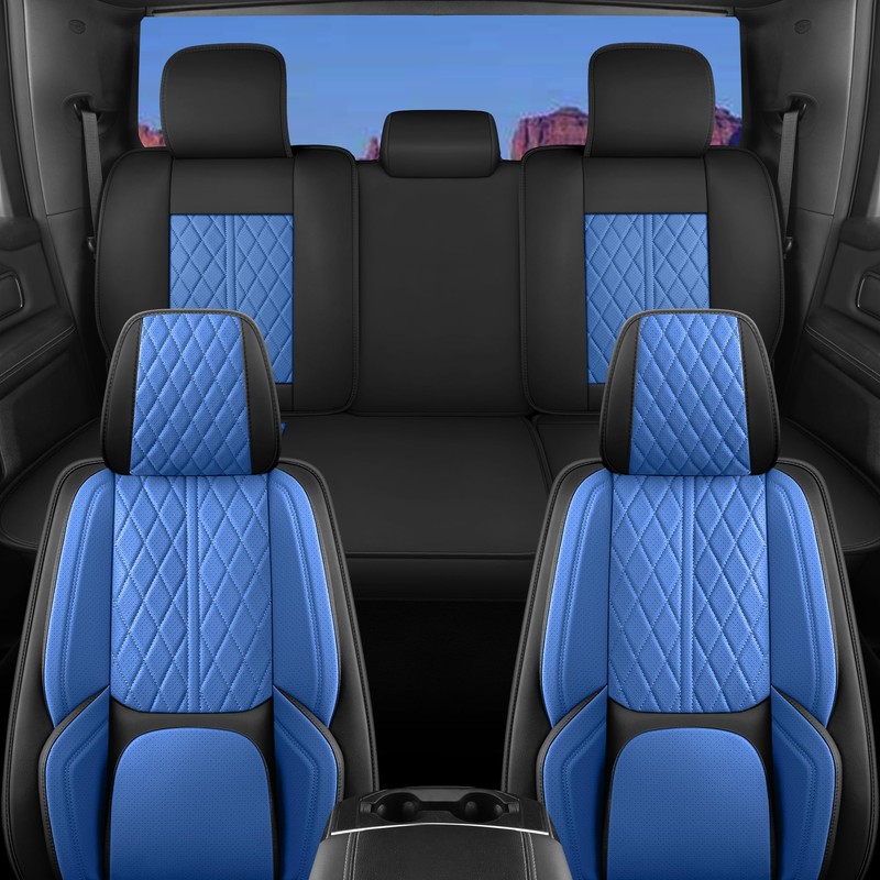 DuDuWang Car Seat Cover Custom Fit for Dodge Ram 1500 2500 3500 2002-2025 Faux Leather Seat Cover Set Compatible with Crew Quad Regular Cab Pickup Truck Cushions (Black & Blue, Front Seat)
