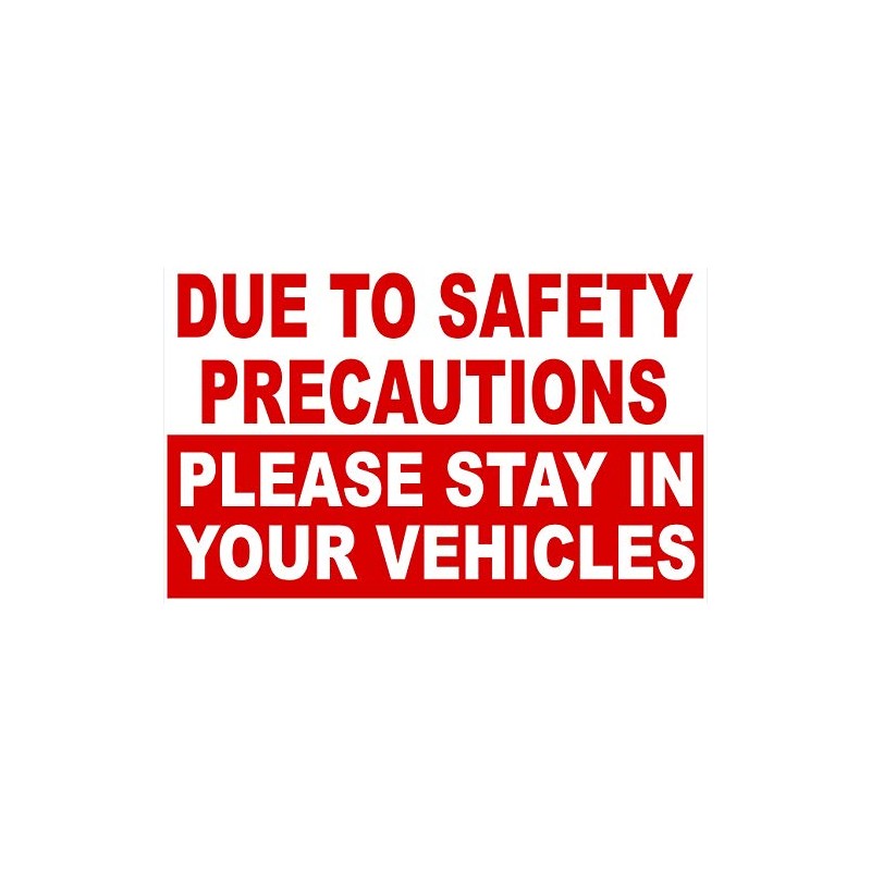 Due to Safety Precautions Please Stay in Vehicle Sign. 9x12 Metal. Curbside Pickup Rules Autobody