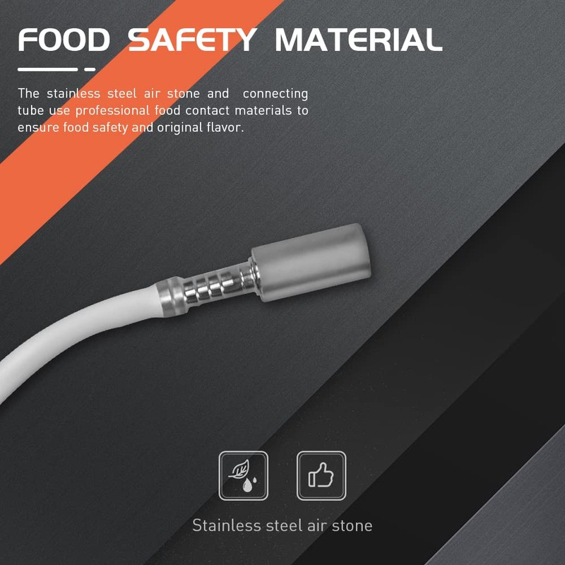 - [Food Safety Material] - The stainless steel airstone and connecting tube use professional food contact materials to ensure food safety and original flavor.