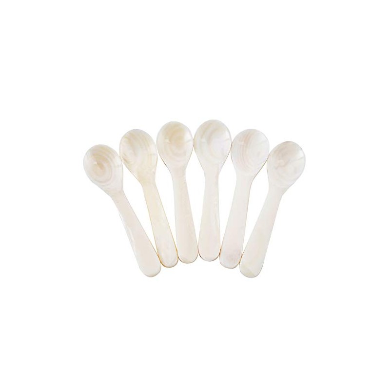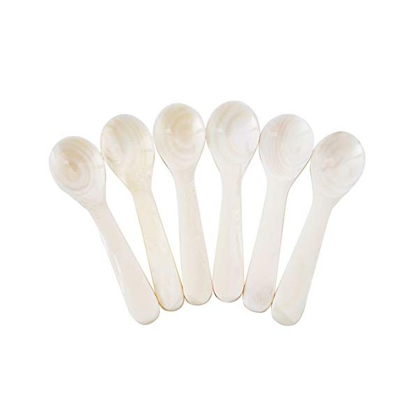 DUEBEL Set of 6 White Mother of Pearl MOP Caviar Spoons for Caviar, Egg, Icecream, Coffee Serving (White, 7x2.1cm)