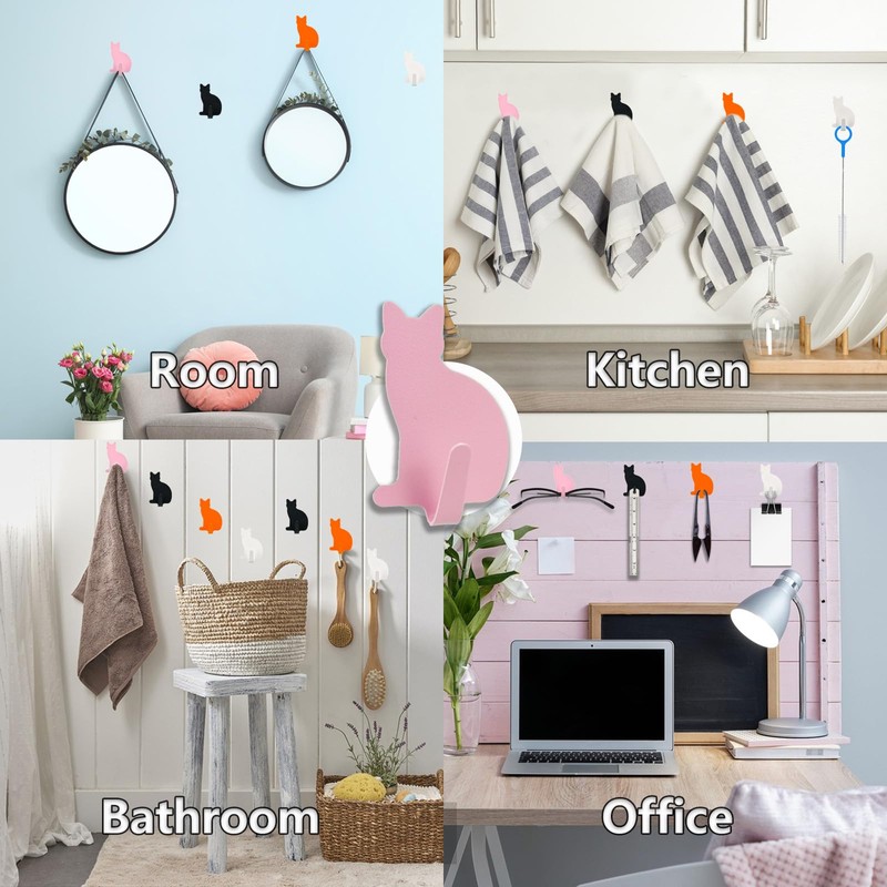 - DESIGN FEATURES: Cute cat silhouette design with curved hooks that securely hold items while preventing damage or slipping