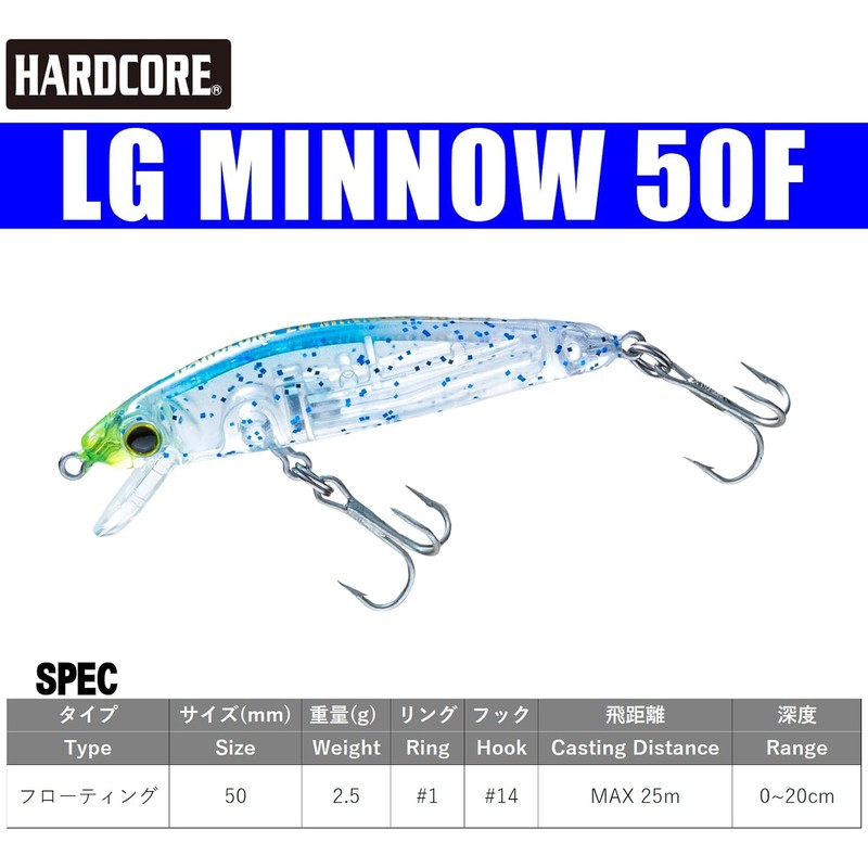 DUEL Hardcore LG Minnow 50mm Floating 2.5g – Light Game Lure for Aji, Mebaru, Trevally & Barracuda