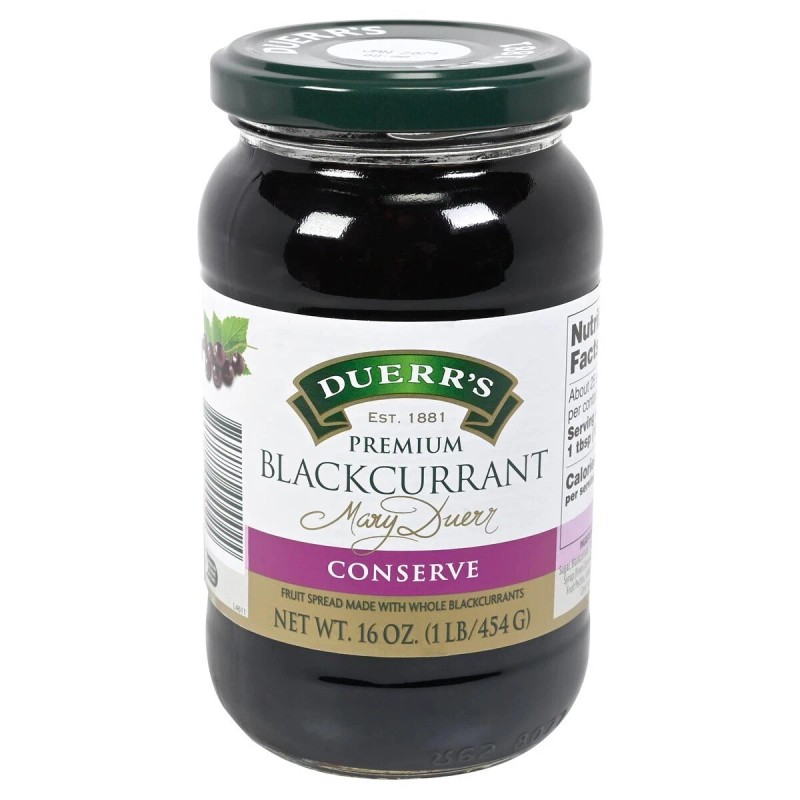 Imported from England, Duerr's is the oldest family-owned jam maker in England. Duerr's English Traditional Blackcurrant Conserves is made from plump, juicy blackcurrants to make a spread perfect for toast or in tarts.