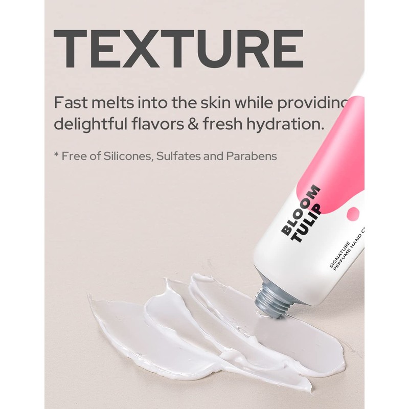 - FRAGRANCE NOTE: Enjoy the fresh and elegant scent of Bloom Tulip Hand Cream, which captures the essence of a tulip garden. With notes of muguet, jasmine, magnolia, and woody and powdery scents, this hand cream is perfect for anyone who loves the delicate fragrance of tulips. Indulge in the freshness and purity of this lovely scent.