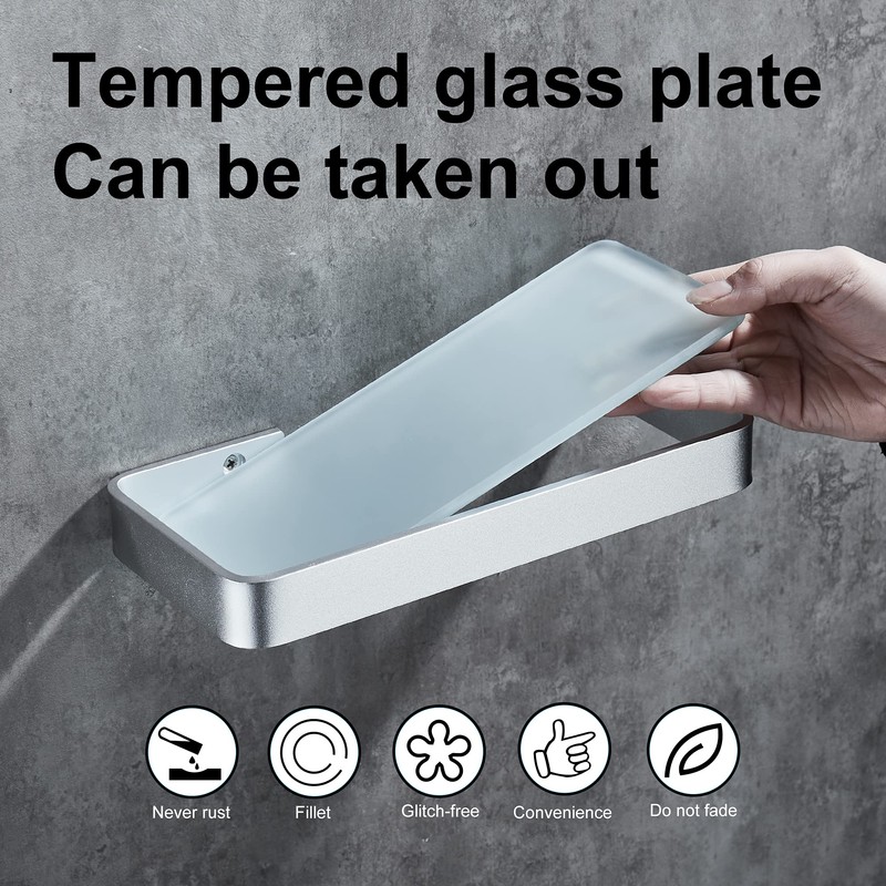 - Safe and practical: the bathroom shelf made of space aluminium and tempered glass, durability, corrosion resistance, rust-proof, scratch-resistant and no sharp edges, you cannot cut anywhere, the edge height 3 cm, which prevents objects from falling off, the user is not damaged even if the glass is fragile.