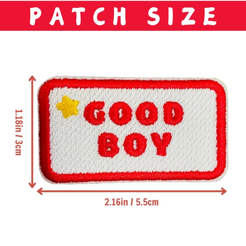 Duggyta Customizable Iron On/Sew On Merit Badge - 1 Pc Embroidered Patch Featuring "Good Boy" Text, Ideal for Dog Bandanas, Jackets, Harnesses, Blanket, Clothes, Easy to Apply