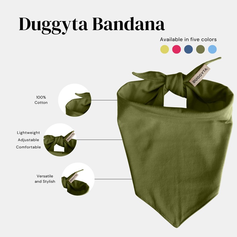 Duggyta Premium Solid Olive Dog Bandana, Luxury Soft Cotton Adjustable Triangle Scarf for Small Dogs, Comfortable, Stylish, and Customizable for All Seasons, Dog Accessories