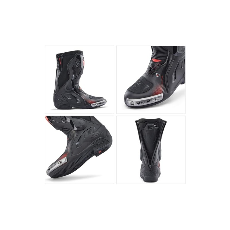 - UNMATCHED ANKLE PROTECTION with DUAL-AXIS SYSTEM: DUHAN motorcycle boots experience ultimate safety with our innovative Dual-Axis Joint System, designed to protect your ankles and disperse impact forces. Whether navigating rough terrains or high-speed tracks, this feature ensures stability and confidence, letting you tackle every ride with peace of mind.
