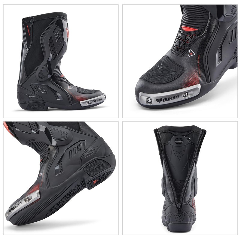 - UNMATCHED ANKLE PROTECTION with DUAL-AXIS SYSTEM: DUHAN motorcycle boots experience ultimate safety with our innovative Dual-Axis Joint System, designed to protect your ankles and disperse impact forces. Whether navigating rough terrains or high-speed tracks, this feature ensures stability and confidence, letting you tackle every ride with peace of mind.