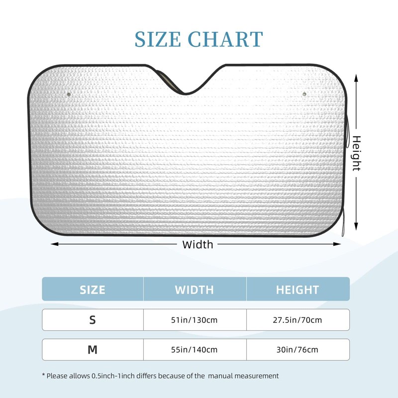 - TOP QUALITY FITMENT : S - 51" Width x 27.5" Height, M - 55" Width x 30" Height. Two size fit for most of car, vehicle, sedan, trucks, SUVs. Please measure your own car windshield size before buy the windshield sunshade.