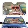Dujiea Car Front Window Sunshade, Cat with Sunglasses Driving A Car Foldable Auto Windshield Sun Shade Uv Heat Sun Visor Protector-Keeps Your Vehicle Cool- Small