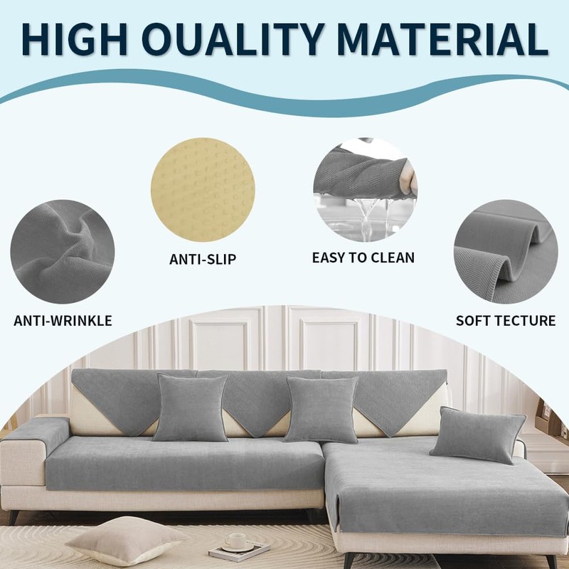 The sofa cover is backed with non-slip silicone rubber to keep your sofa cover in place. Non-toxic silicone dots provide a non-slip sliding layer on fabric and leather sofas, safe for your dog and furniture!