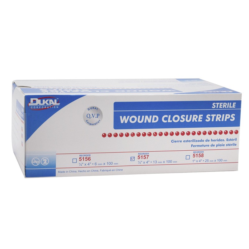 DUKAL Wound Closure Strips consist of thin non-woven reinforced fibers that are arranged in a bilateral pattern for high tensile strength. They are indicated to provide support following early suture/staple removal and to close wounds without significant tension, edema, stretch or movement. The wound closure strips have a wide array of uses such as securing devices to skin, securing skin grafts in burn patients, and securing skin flaps.