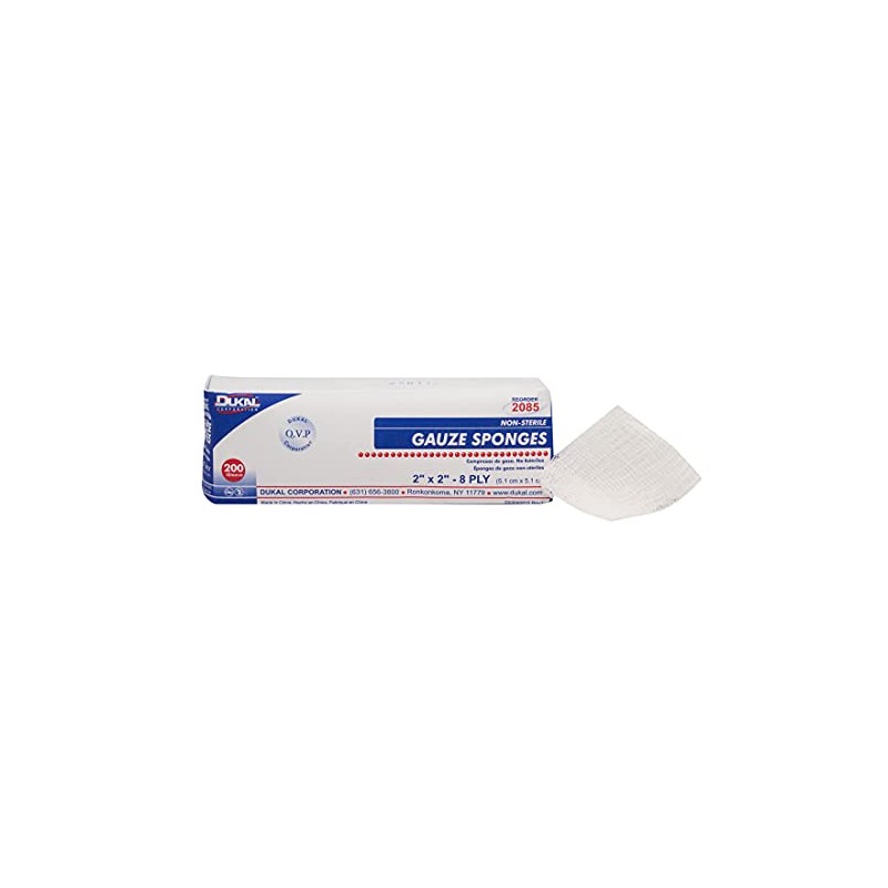 Dukal Gauze Sponge, 8-Ply, Non Sterile, 2" x 2", White (Pack of 5000)