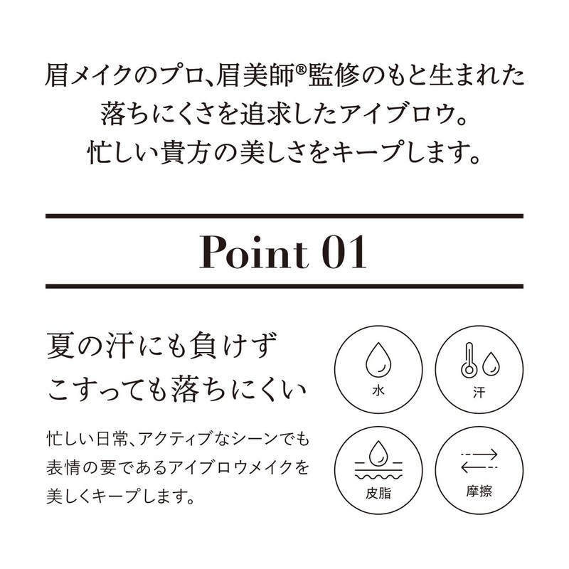 - 使用方法:1. キャップをしたまま、上下に数回軽く振ってください。2. 毛流れに沿って1本1本毛を足すように描いてください。✅下地、ファンデーションを塗る前に使用することで落ちにくくなります。✅落とす時は、クレンジングをしっかりなじませて、よく洗い流してください。✅初めて使用する時や筆先を上向きにした状態で保管していると色が出にくくなる場合があります。この場合は、軽く湿らせたティッシュペーパー等で筆先をふき取り、キャップをした状態でカチカチ音が鳴るまでペンを振ってください。✅使用後は毎回必ずティッシュペーパーなどで筆先を拭き取り清潔にして使用してください。